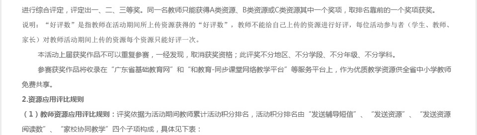 | 家校协同教学 | 任教班级学生的家长登录“和教育-同步课堂网络教学平台”手机客户端,每天给任课教师加1分 | 任教班级的学生家长每登陆一次客户端加1分,重复登陆不重复计分,每位教师每天最多给80分 |
