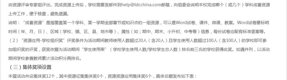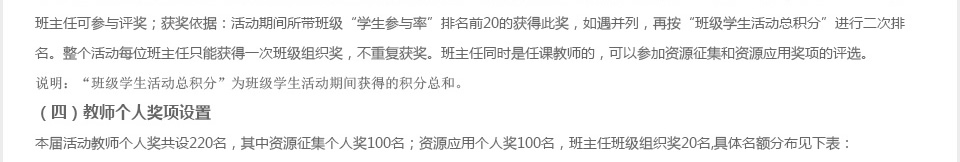 | 资源征集—学校贡献奖 | 一等奖 | 2 | 市教育局颁发证书 | 1200元教育基金 |