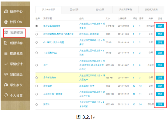 2) 点击首页左边导航栏中的“我的资源”进行发送(如图3.2.1)。