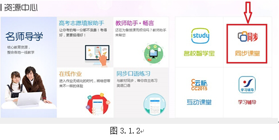 点击资源中心右上方的“同步课堂”进入同步课堂平台,如图3.1.2;