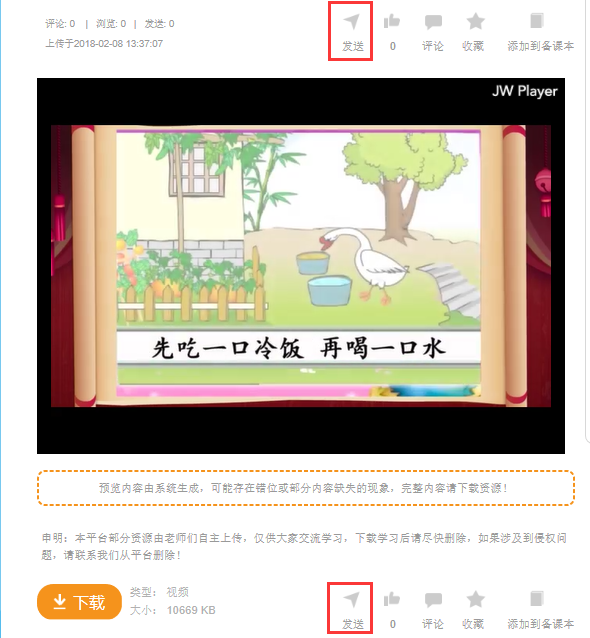 2)在资源详情页点击“发送”即可(如图3.2.1)。