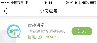 点击“登录”进入到家长个人首页,点击“学习”中的“学习订购”,进入到应用页面(如图5.1.4、图5.1.5),点击“童趣课堂”(如图5.1.6)即可进入“童趣课堂”。