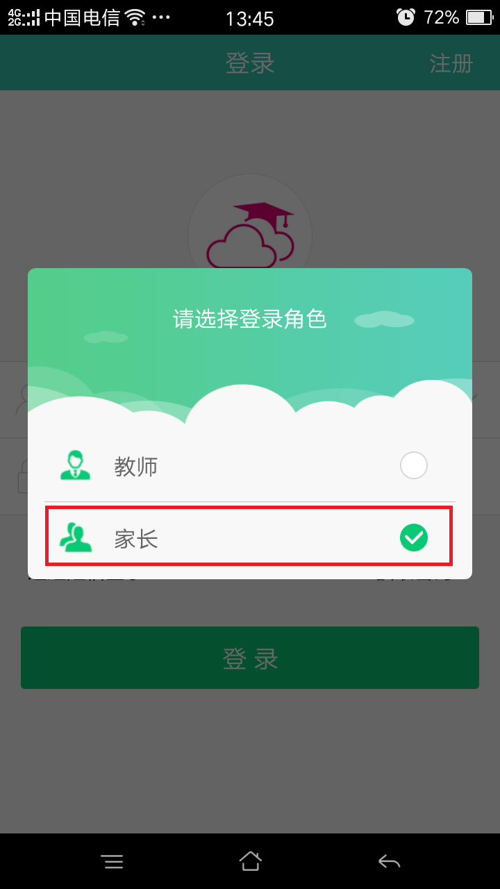 2.打开“和教育”APP,根据提示,输入和教育账号或手机号(如图二),点击“下一步”,输入密码,如忘记密码,可点击下方“通过短信登录”进行登录,或者点击“获取密码”,按提示步骤取回密码后进行登录(如图三)。然后在“选择登录角色”中选择“家长”进入(如图四),最后在“首页”菜单中,找到“同步课堂”进入同步课堂页面(如图五)。
