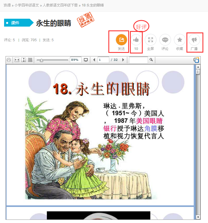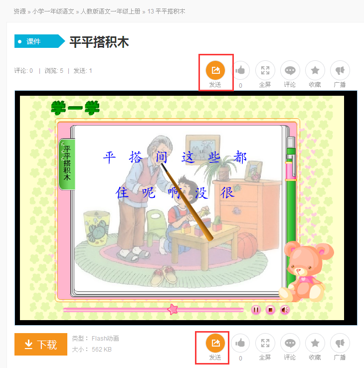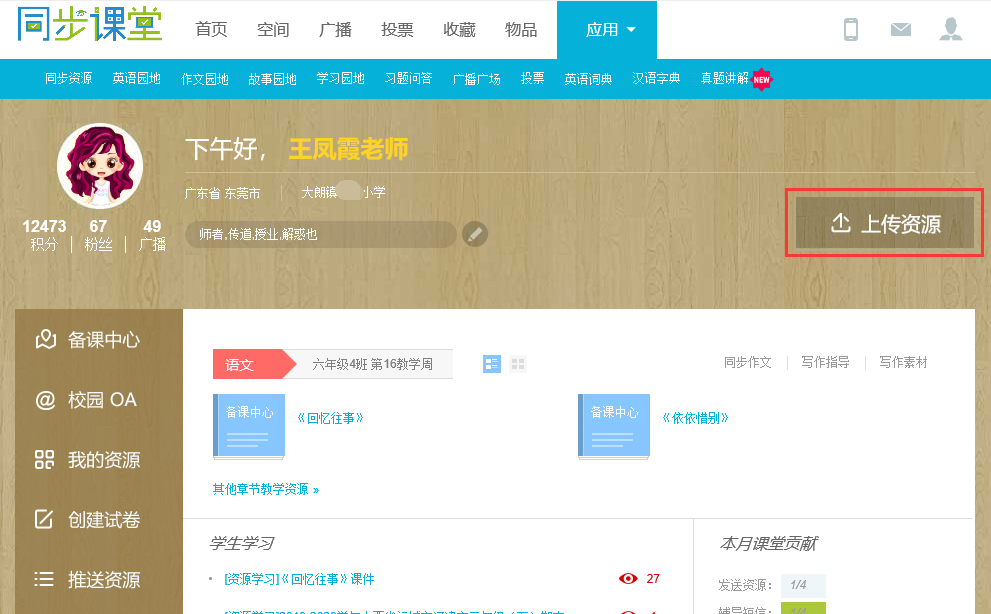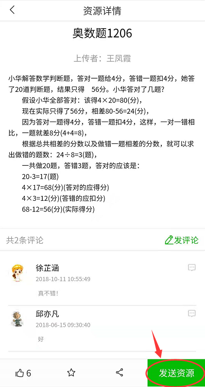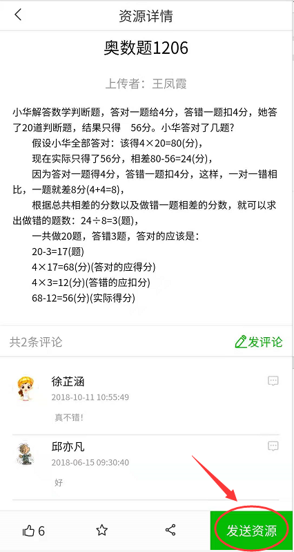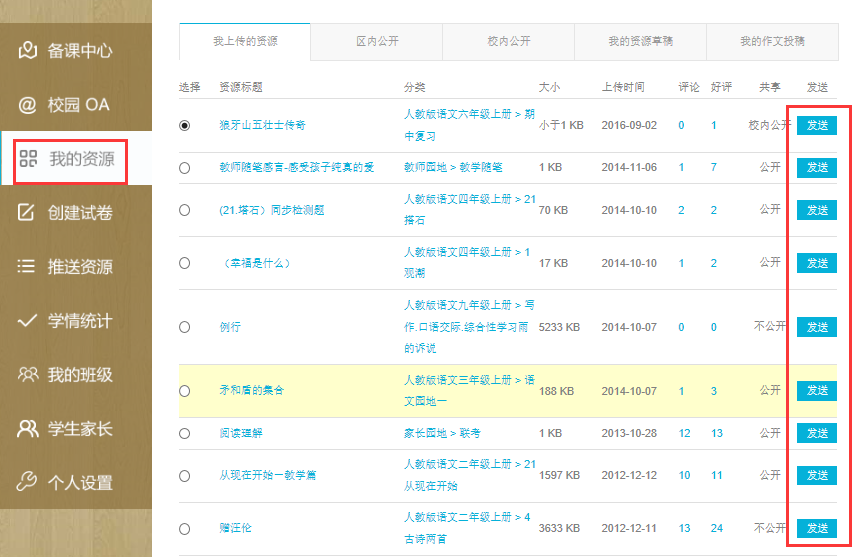 (注:有“发送资源”按钮都可发送资源给学生,此操作可获得发送资源积分)