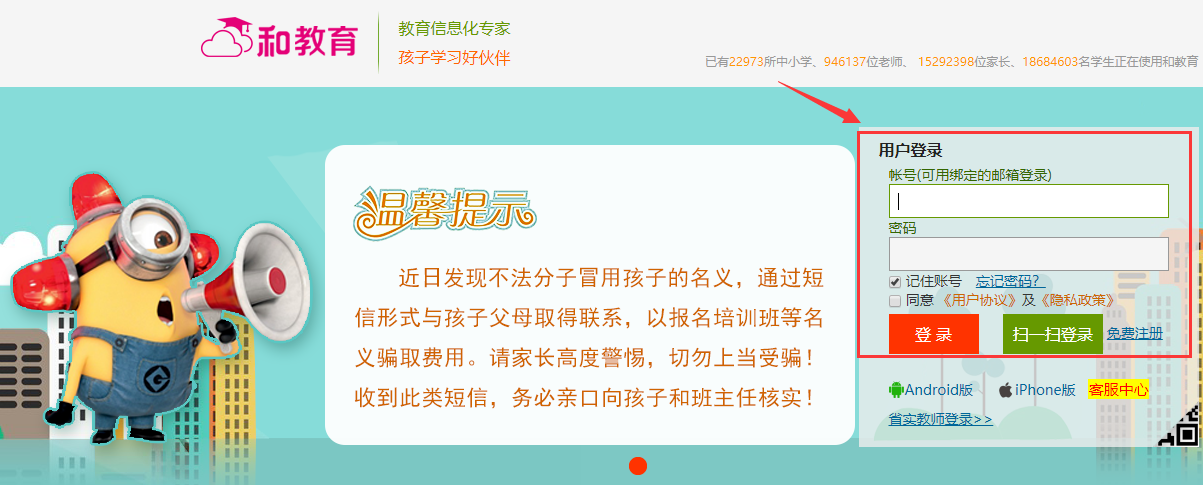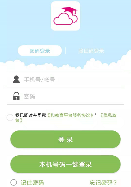 (注:账号可以为开通“和教育”的手机号,若忘记密码,请点击右侧“忘记密码?”找回)