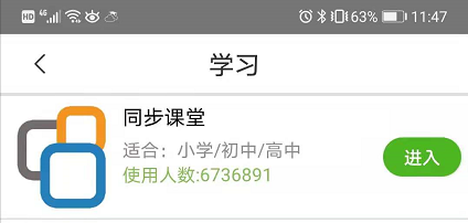 点击“登录”进入到教师的和教育个人首页(如下图2.1.3),点击“学习”中的“同步课堂”(如下图2.1.4)即可进入“同步课堂”。