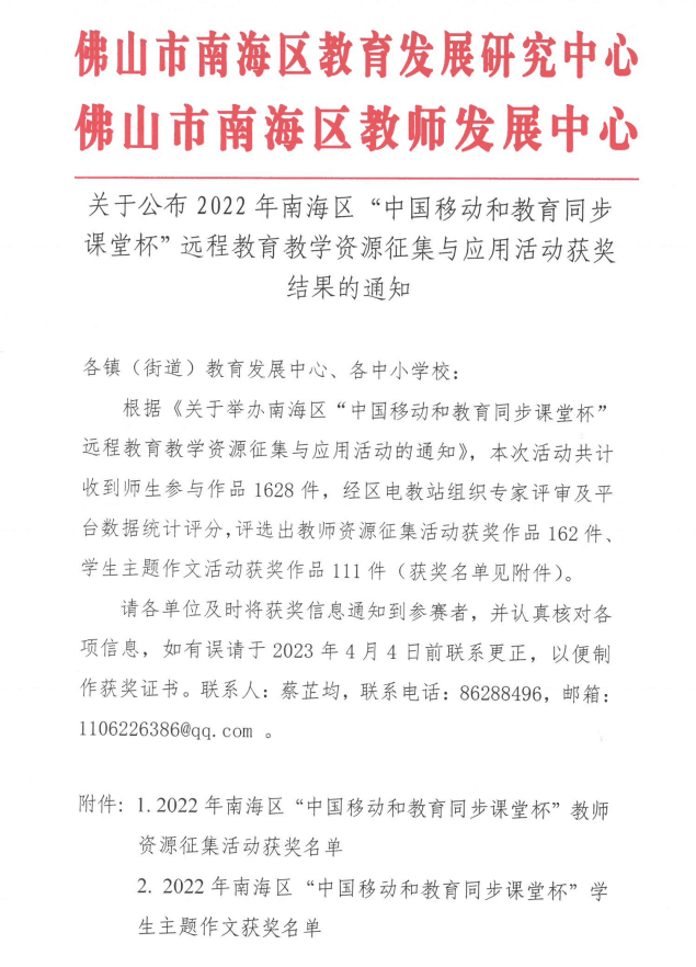 南海区“中国移动和教育同步课堂杯”