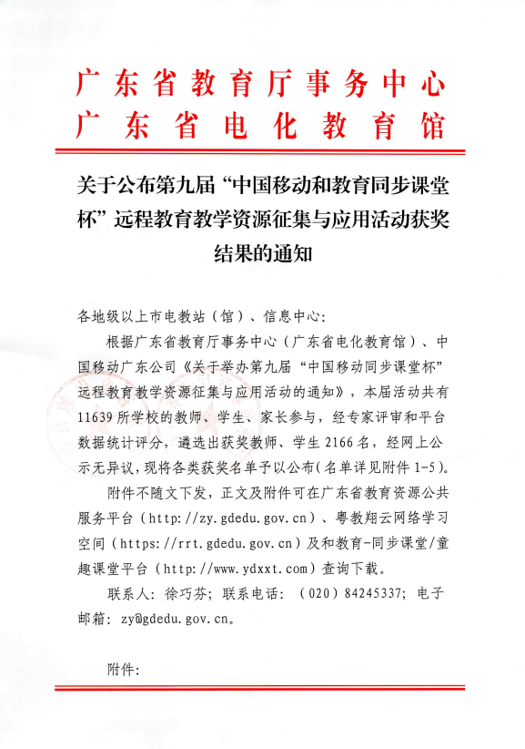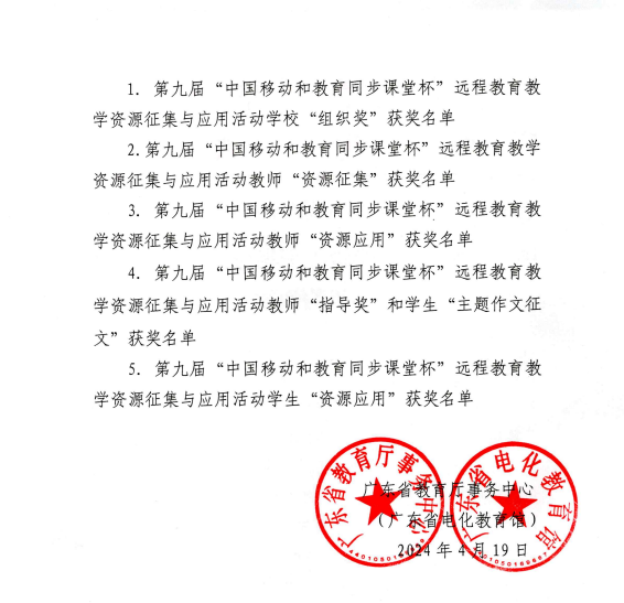 1. 第九届“中国移动和教育同步课堂杯”远程教育教学资源征集与应用活动学校“组织奖”名单
