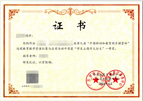2)学生主题作文征文奖:在教师的指导下完成作文写作,并请指导教师签名后投稿参加活动